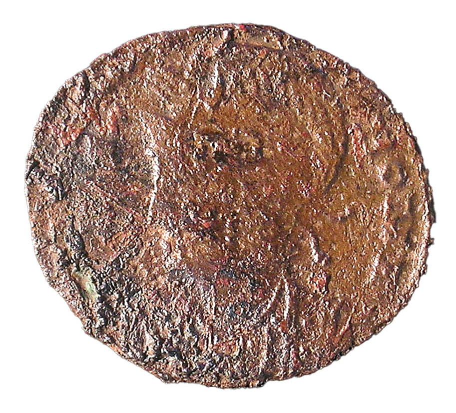 Wear: VF. Slight, somewhat extensive pitting; very slightly nicked edge. Thin, somewhat sparse patches of dark bronze corrosion.