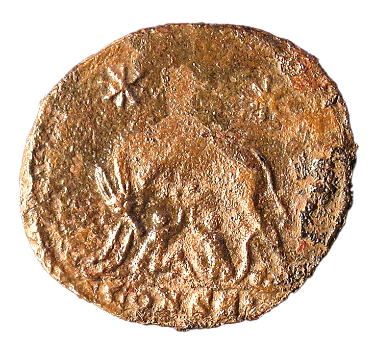 RW: “This example is in excellent condition for the type. This rare variant with a dot at the end of the mint signature is not in RIC but is noted in LRBC I. The Roma/wolf-and-twins issues of A.D. 330–333 have no dot at the end of the mint signature, and by the time the dot appears in A.D. 333–335, the reverse for Roma is the GLORIA EXERCITVS type (e.g., RIC VII p. 582, 78 [Constantinople]). [KC031] appears to be a transitional coin of A.D. 333.“