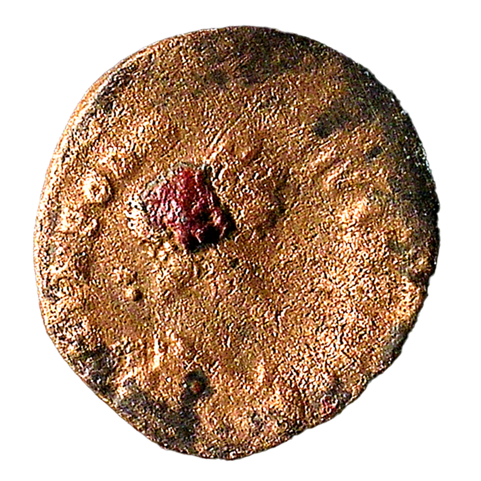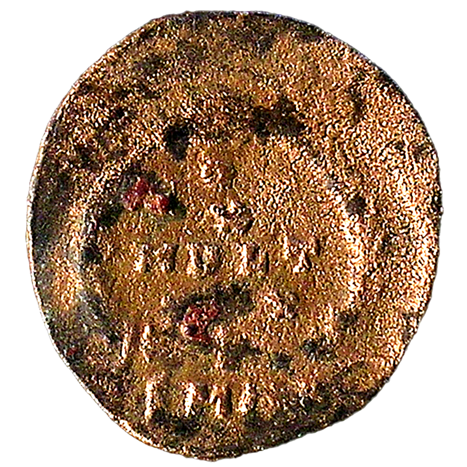 Wear: F. Slight pitting and flaking around edges; large corrosive accretion on upper left obverse.