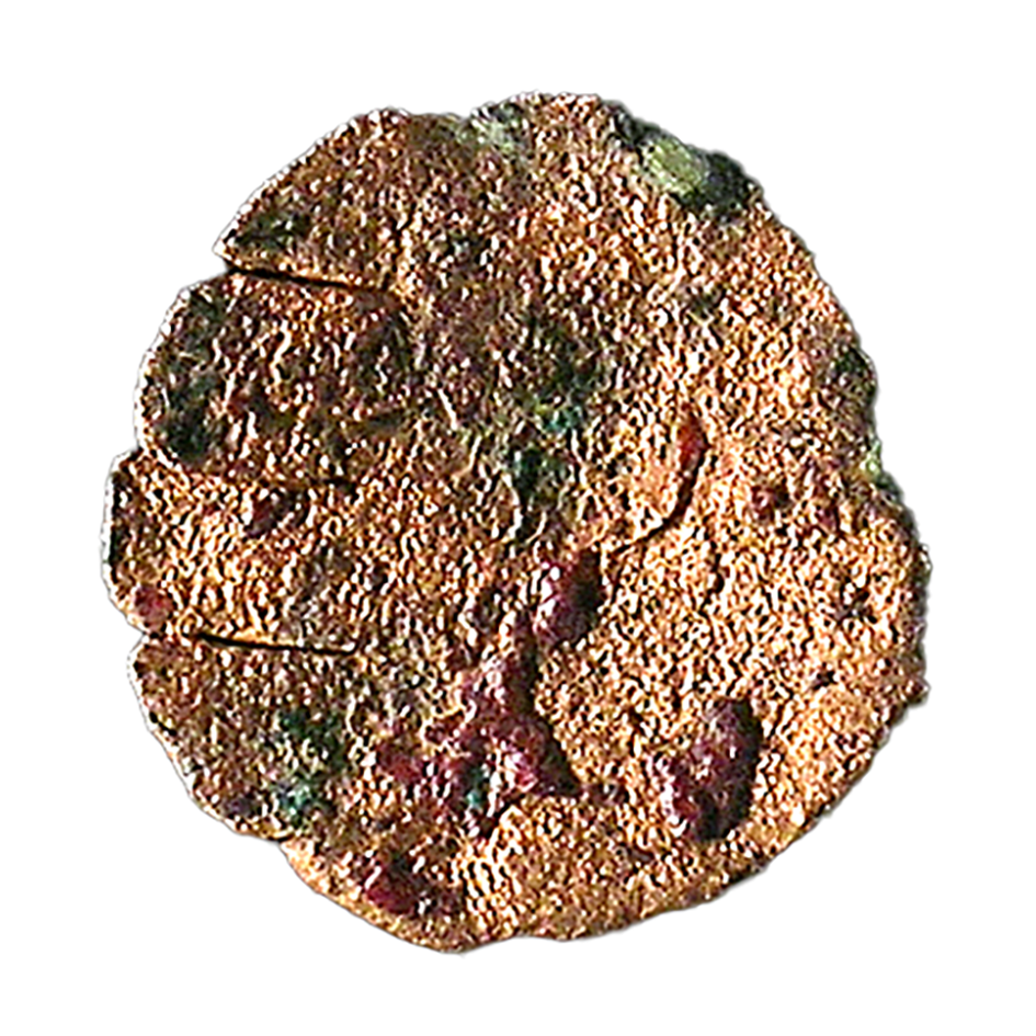 RW: “The very thin and flat fabric and a slight presence of silver are suggestive of the Venetian torneselli that circulated in Greece. It is also quite possible that this is not a coin at all. The object has three parallel snips into one edge: fetishistic treatment?“