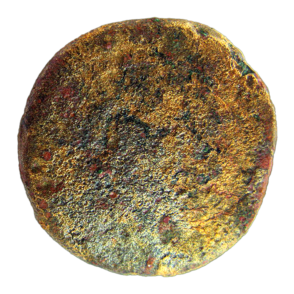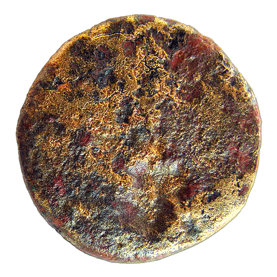 Grain-wreathed head of Demeter or Kore facing one-third right (traces)