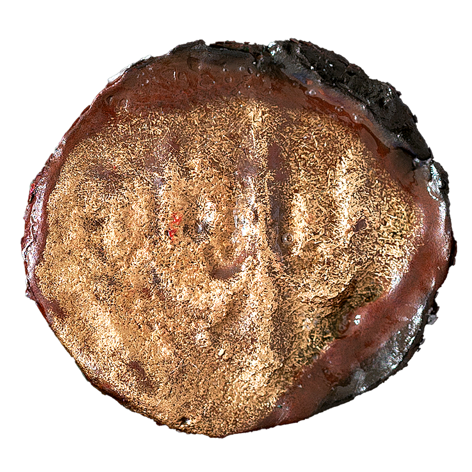 Wear: aG/F. Slight, sparse pitting and few small nicks around edge; thick, dark layering of bronze disease around margins.