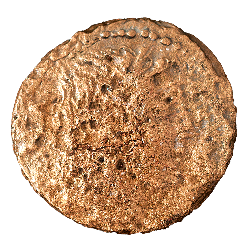 Wear: F/VG. Extensive, slight to moderate pitting to gouging; slight chipping around edges.