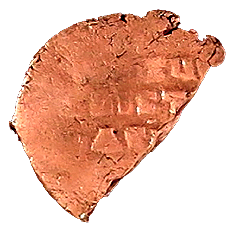 Wear: aG/G. Severe wear around margins; Extensive, minute pitting and surficial cracking; deeply nicked edge; roughly 30% of flan sheared off after use.