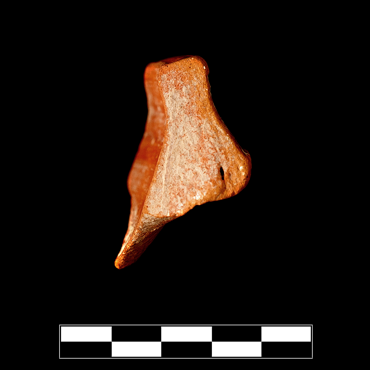 One fragment preserves 25% of rim and small part of upper body. Slight, rare abrasion; slightly worn breaks; slight, sparse encrustation.