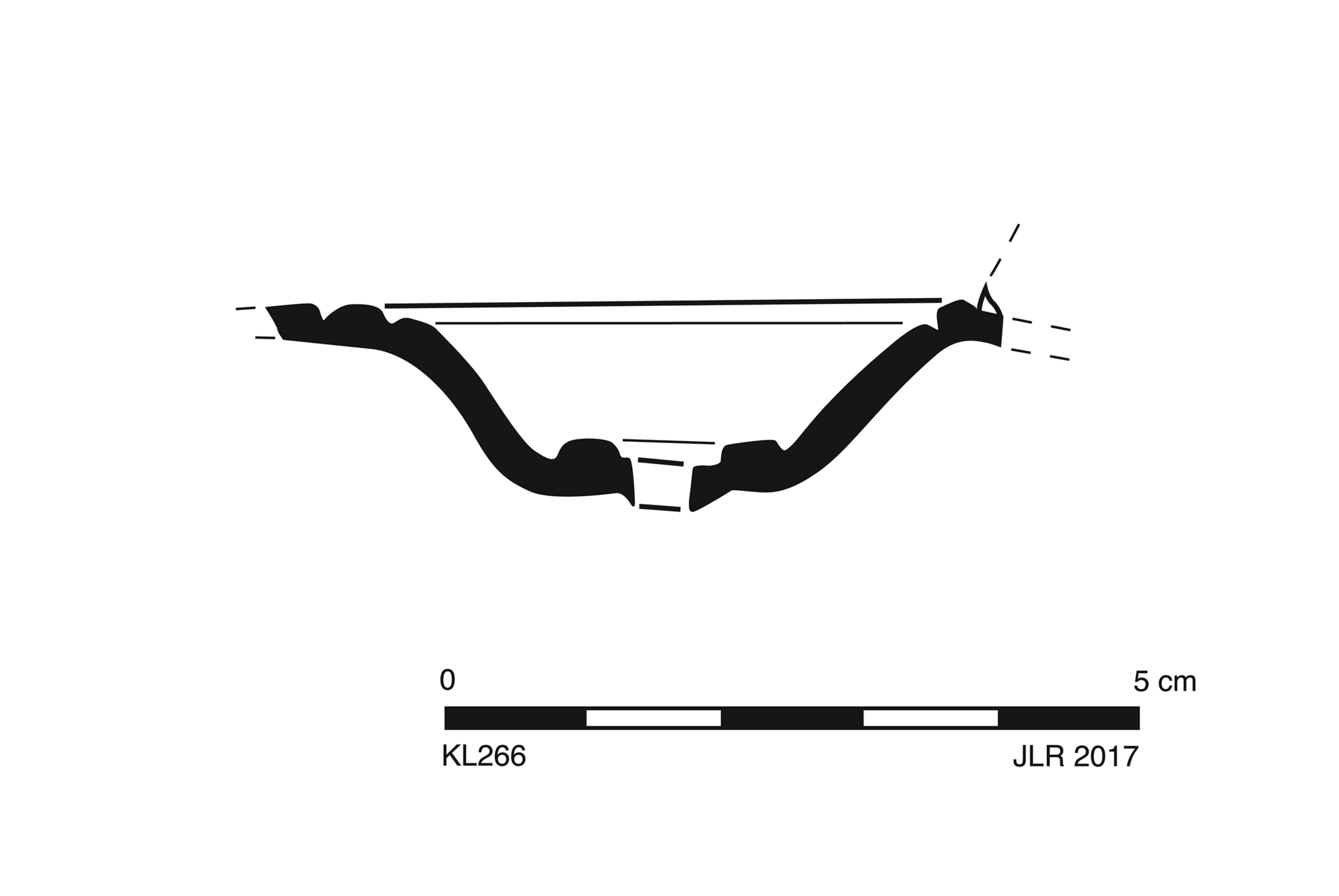 Four joining sherds preserve almost entire discus and large part of shoulder. Slight, extensive abrasion and scoring; moderate, extensive film of encrustation.