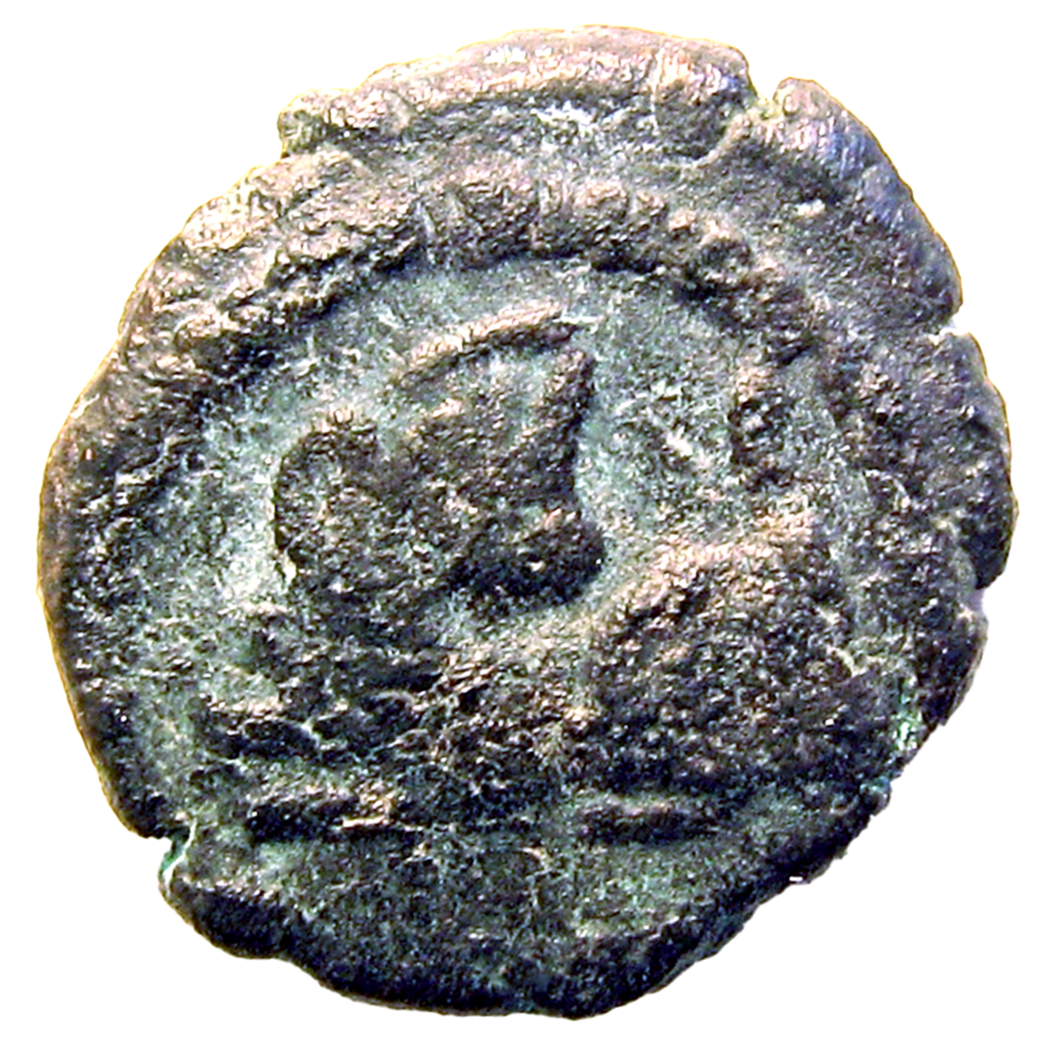 Wear: aG/aF. Nicked edge; extensive, minute pitting. Thin film of pale green bronze disease on both faces.