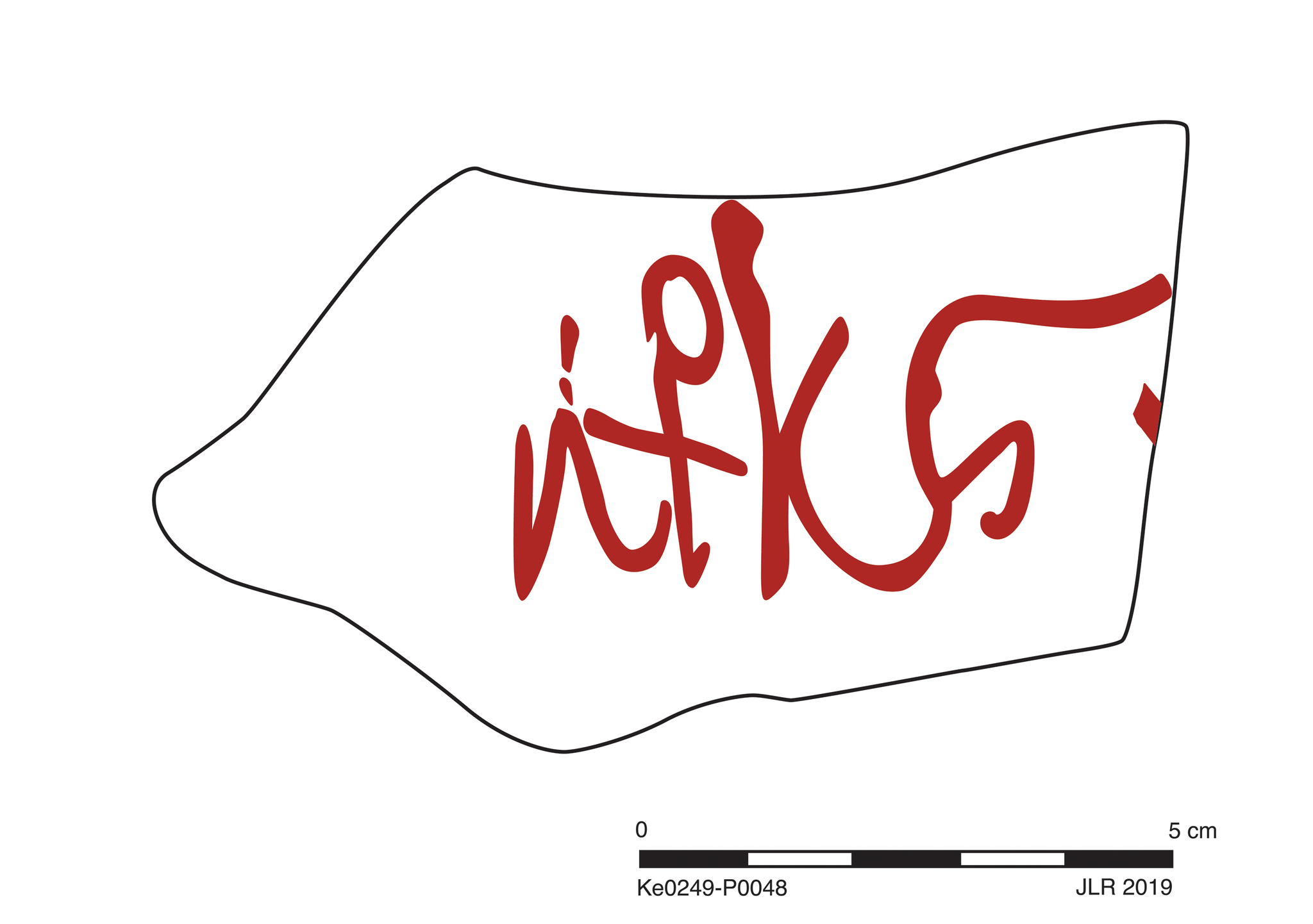 One sherd preserves small part of shoulder with dipinto. Slight, somewhat sparse abrasion; worn breaks; thin strips and bands of encrustation.