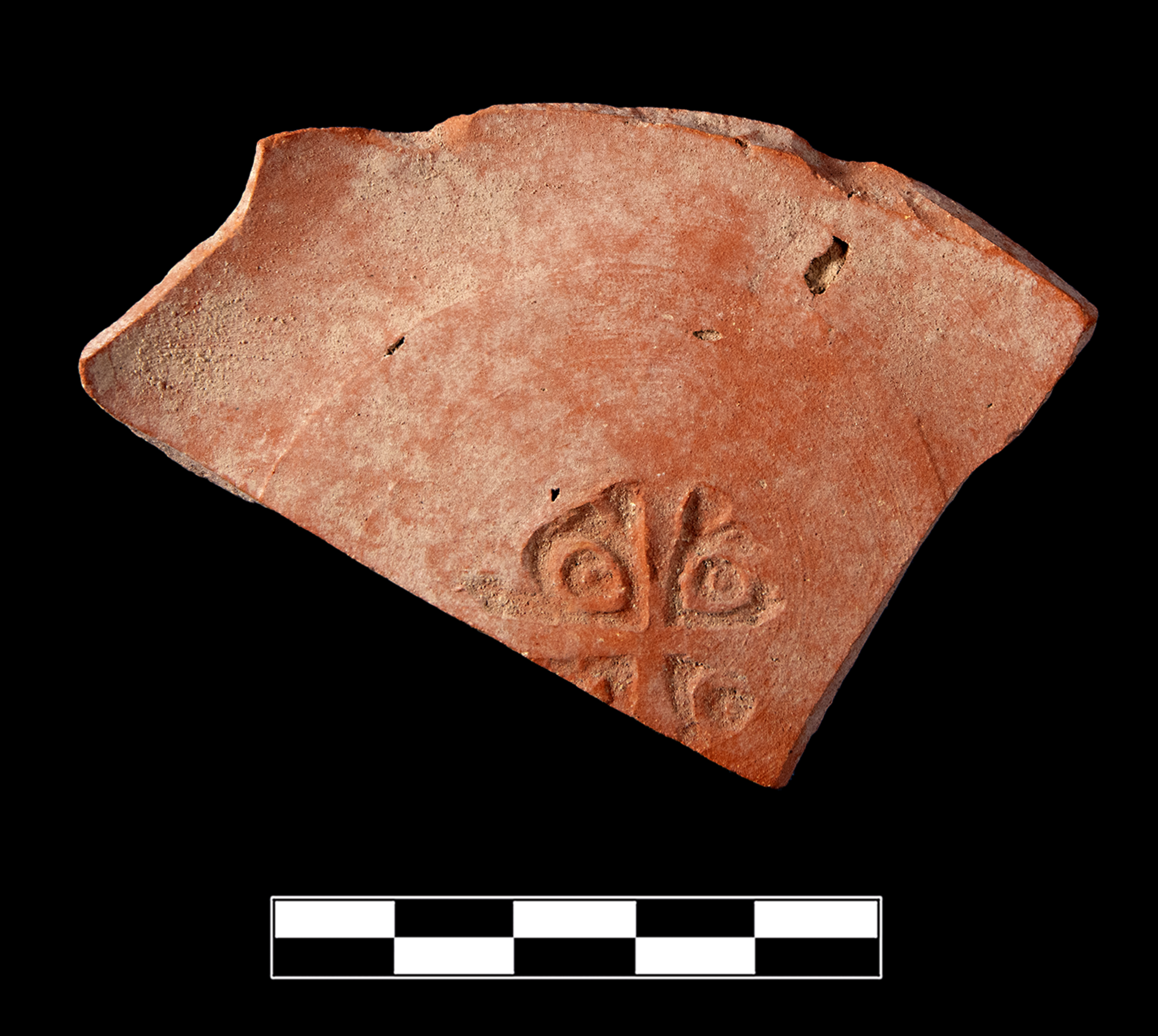 Stamp: Christogram with rho short loop left, with circles in quadrants (Group III, ca. A.D. 500).