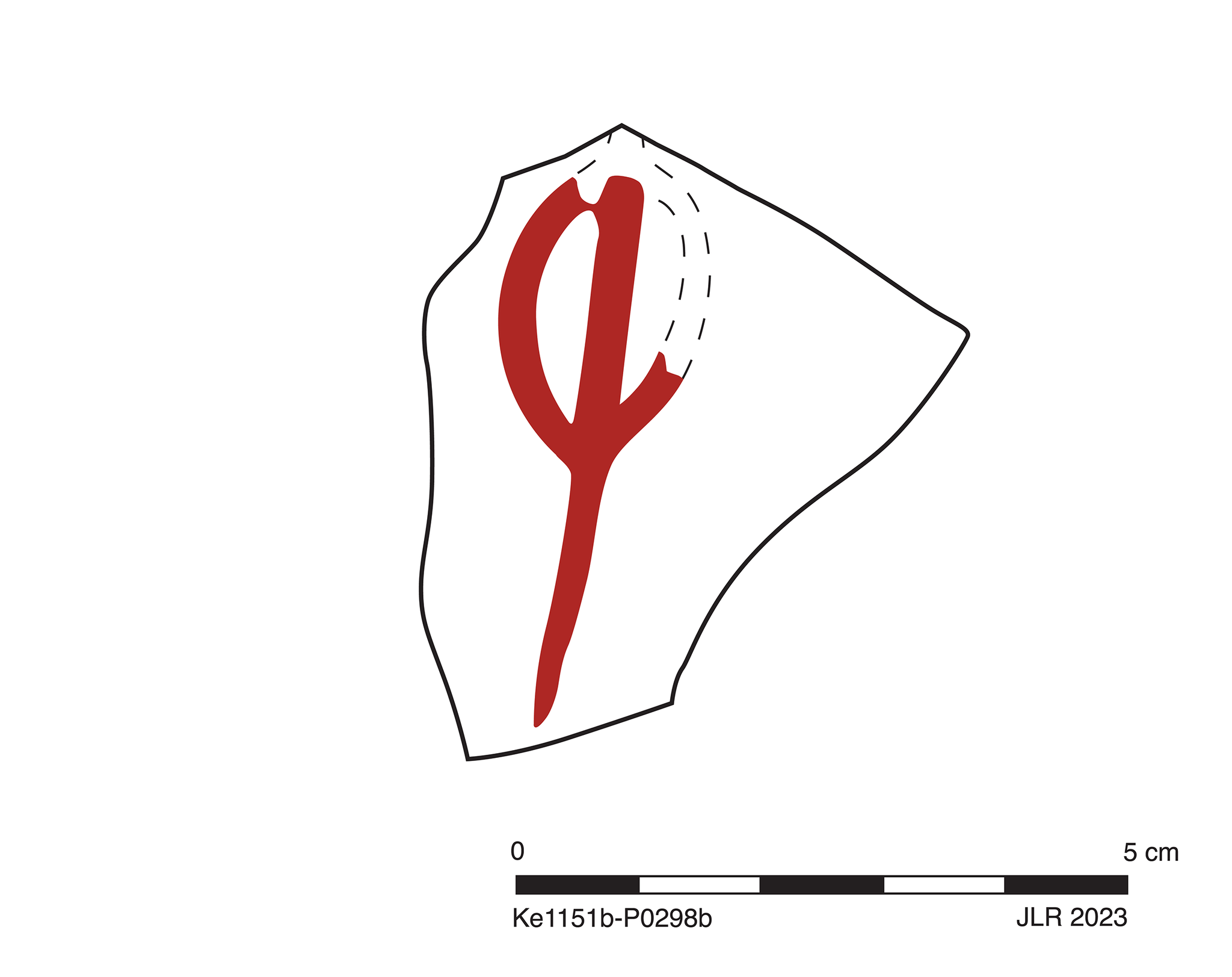 One sherd preserves very small part of shoulder with dipinto. Slight, sparse abrasion; worn breaks.