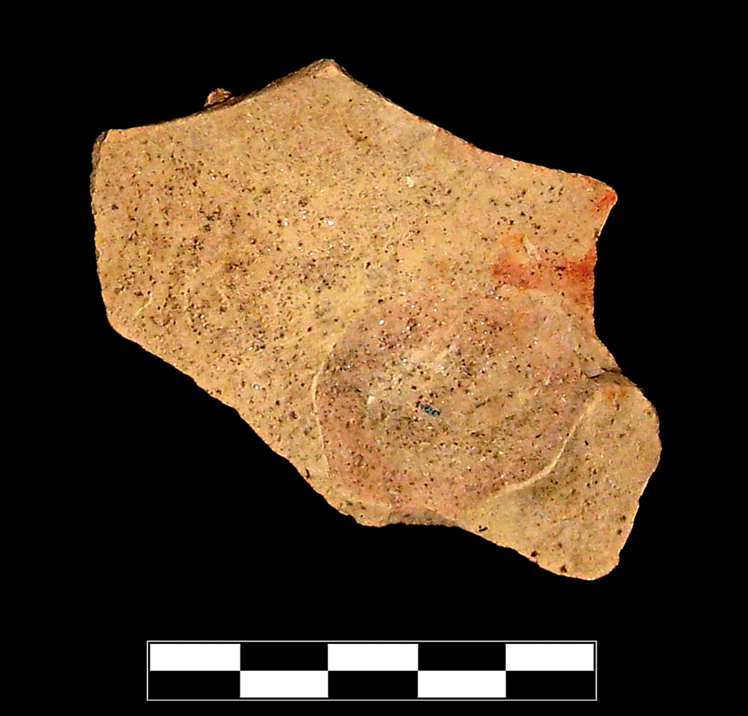 Pale red fired to slightly more buff at exterior surface (2-3mm). Hard, somewhat coarse; granular break, with rough surface texture. Common, well sort, small, mostly dark (red, gray to black) and fewer white (calcareous? quartzitic?) inclusions. Eastern Cilician.