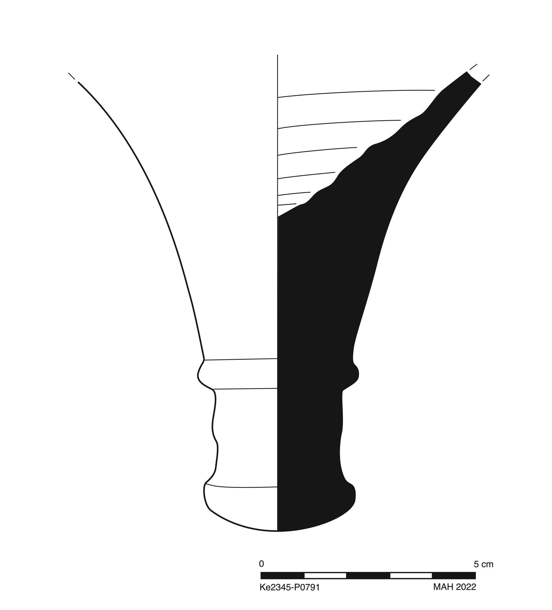 Amphora. Spike toe has thickened button at bottom; distinct ring marking lowest part of toe, which is still solid at this point.