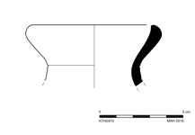 One sherd preserves ca. 60% of rim and small part of upper neck. Slight, sparse abrasion and chipping around rim; mostly clean breaks; scattered patches of encrustation.