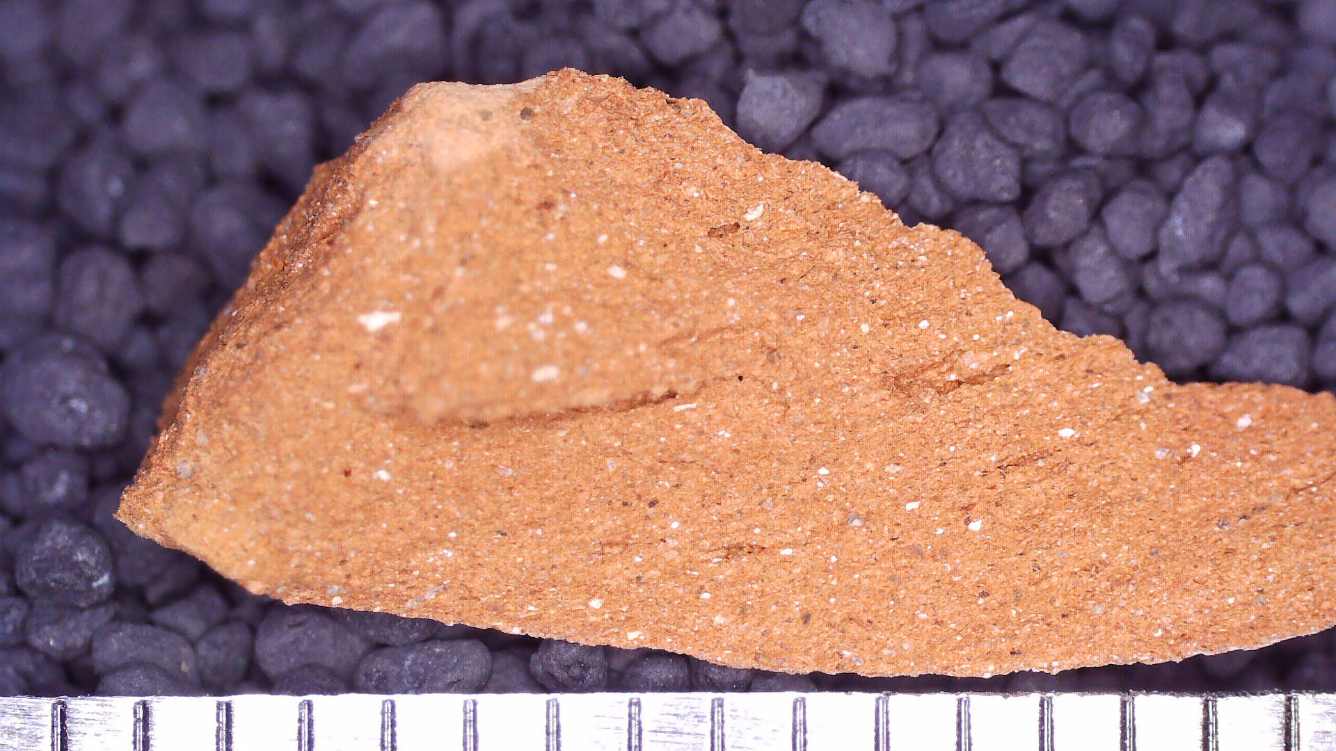 SCA Fabric C: red to reddish brown with a tinge of orange; hard, fine; slightly granular break and rough texture; silvery and golden micaceous.