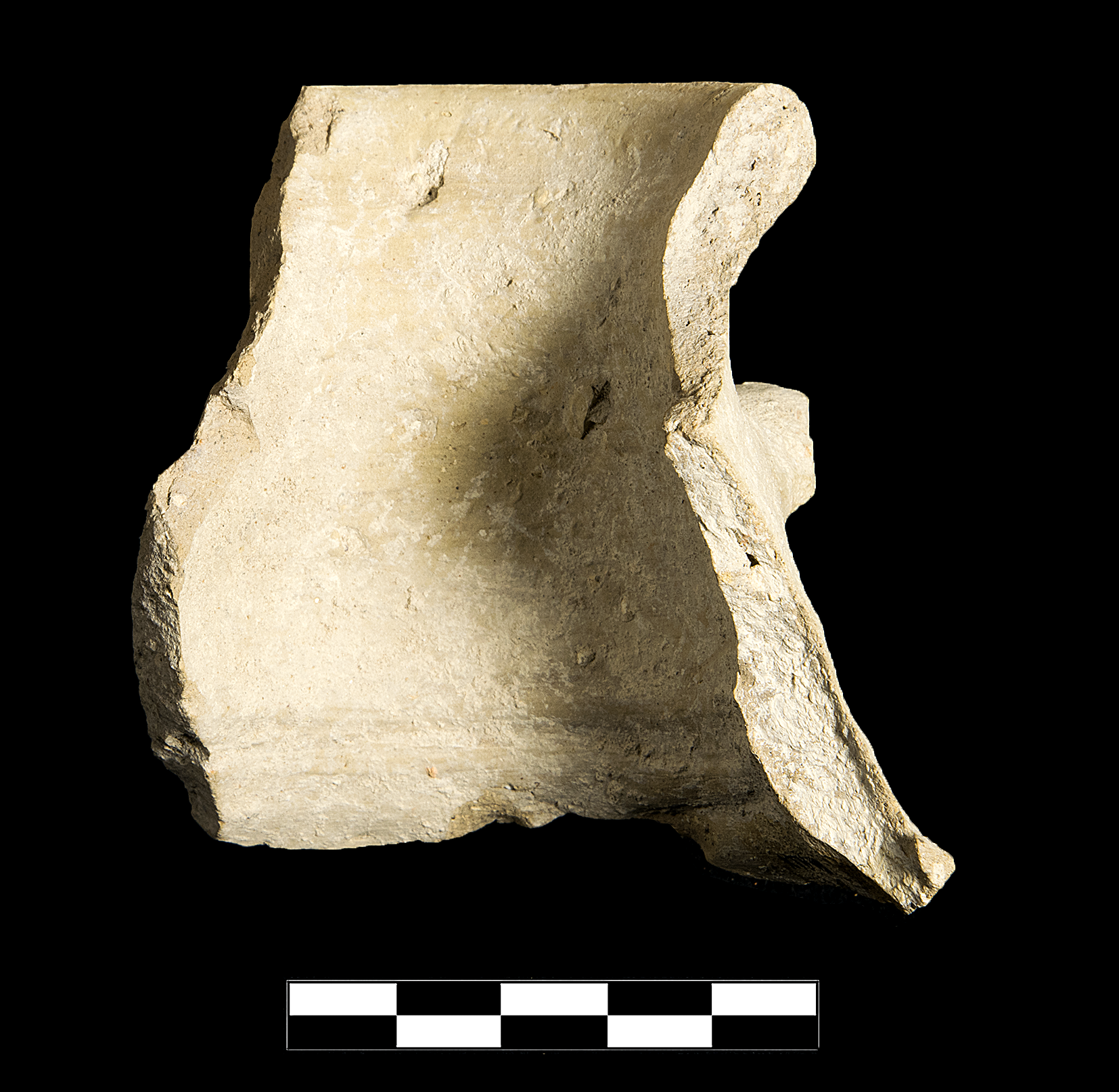One large sherd preserves 15% of rim and full profile of neck from shoulder to lip. Slight, sparse abrasion, scratching across surface, and chipping around rim; mostly clean breaks; scattered specks and patches of encrustation.
