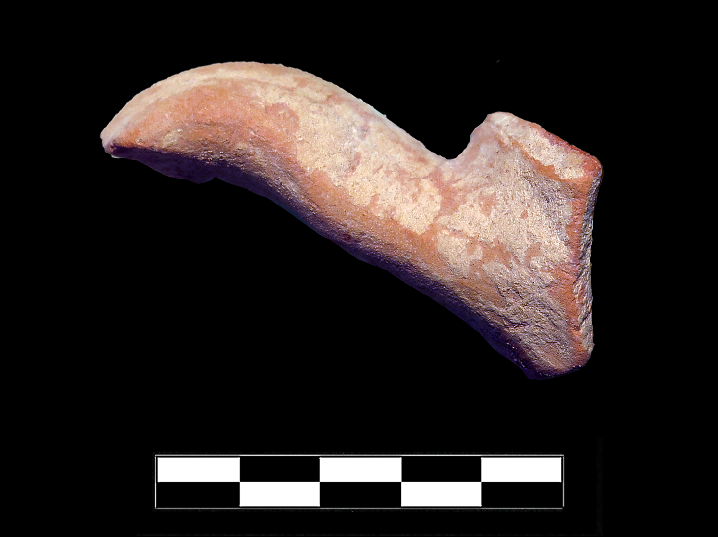 One sherd preserves upper handle and attachment at neck. Slight, sparse abrasion and gouging; worn breaks; thick, discontinuous patches of encrustation.
