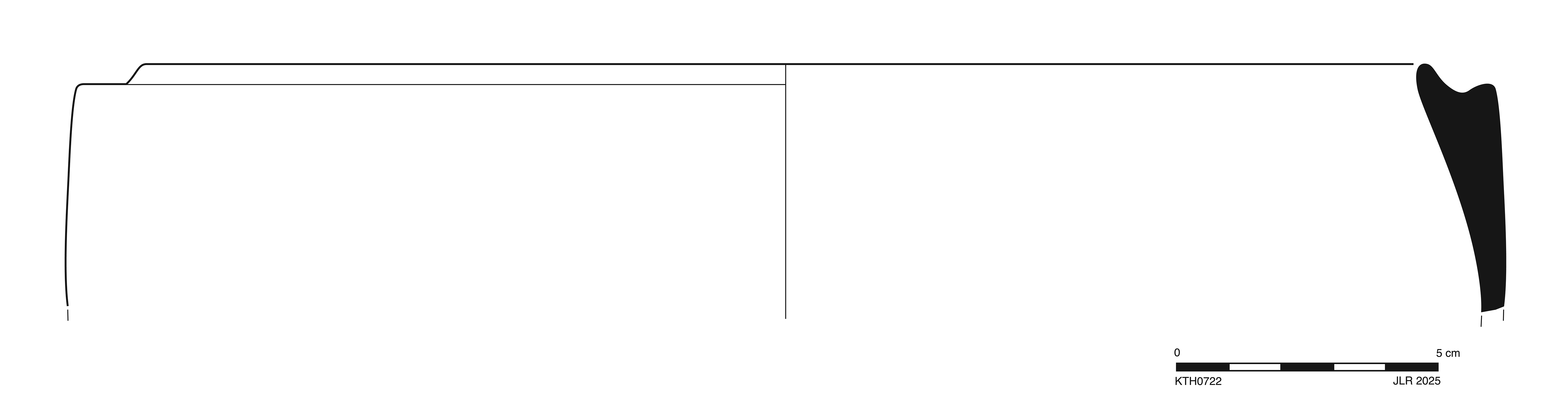 One sherd preserves 12% of rim and small part of upper wall. Slight, somewhat sparse abrasion with rre gouging; worn break; scattered specks of encrustation.