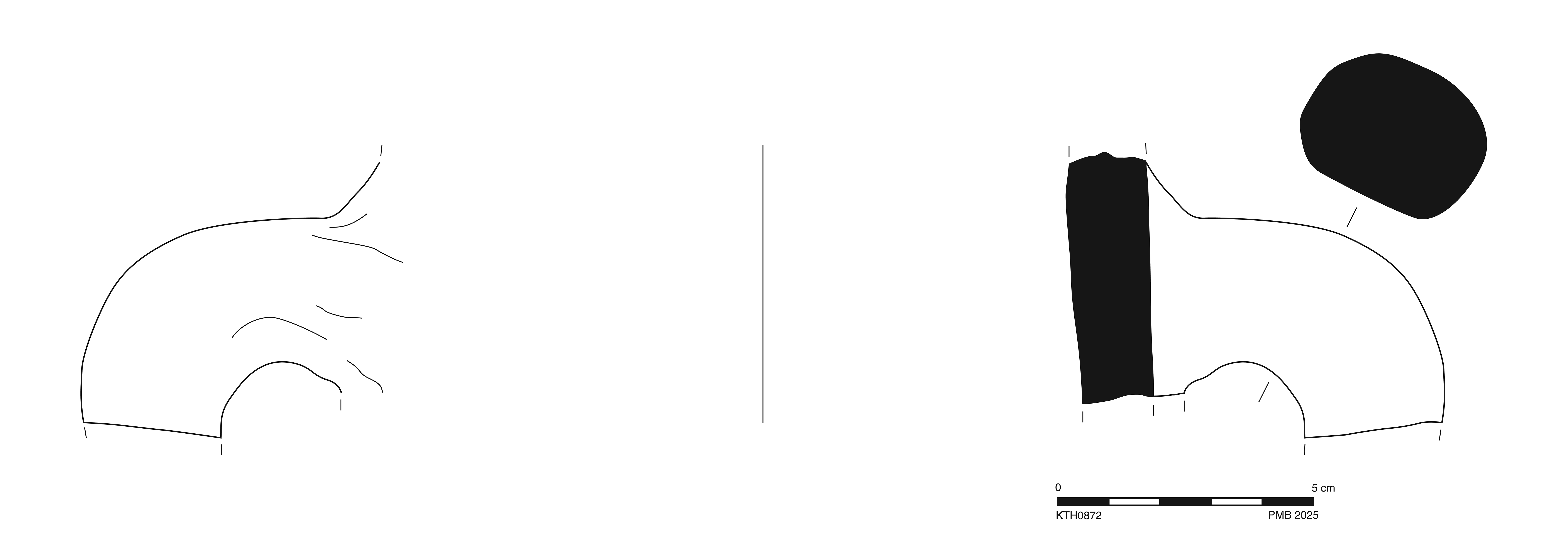One large sherd preserves upper part of one handle and contiguous wall of neck. Extensive, moderate abrasion and deep gouges; dulled and worn breaks; thin, extensive film of encrustation.
