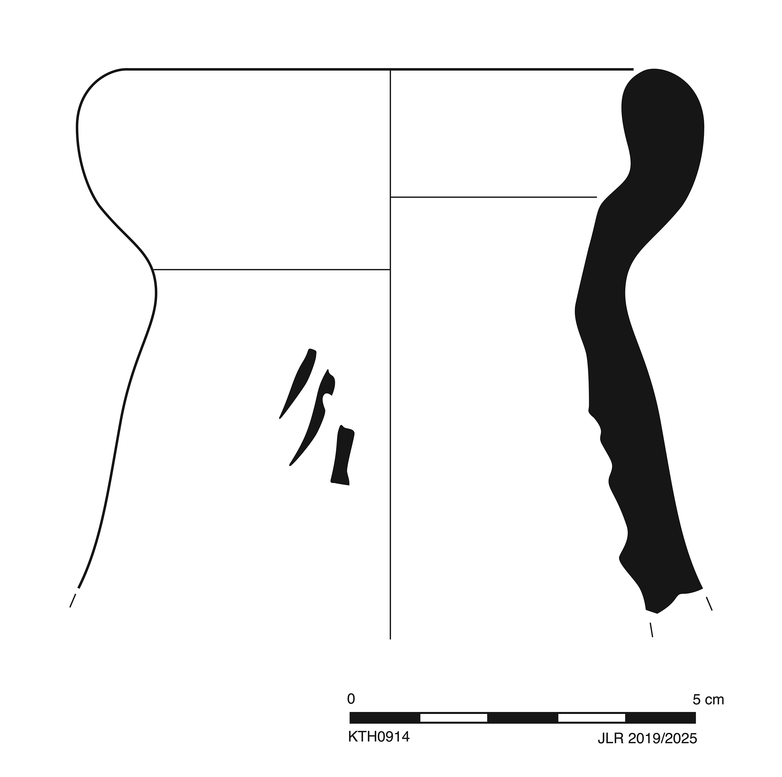 One sherd preserves 33% of sherd and part of upper neck. Sparse, slight to moderate abrasion and extensive flaking; worn breaks; somewhat thick, extensive encrustation.