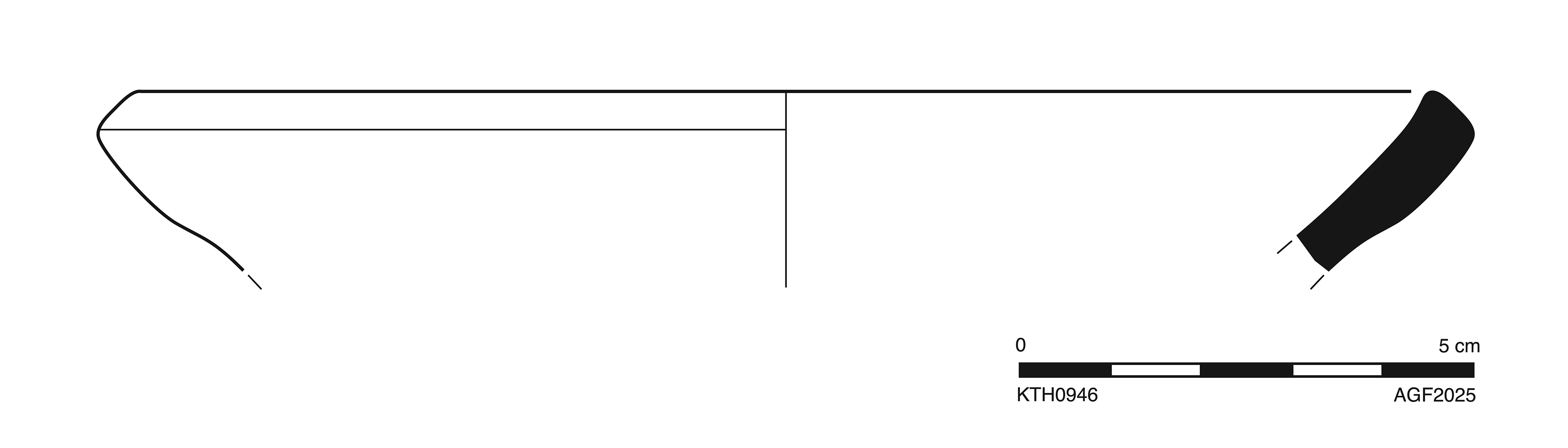 Casserole. Flaring rim with flat upper and outer faces, thickened at outer end with sharp edges.