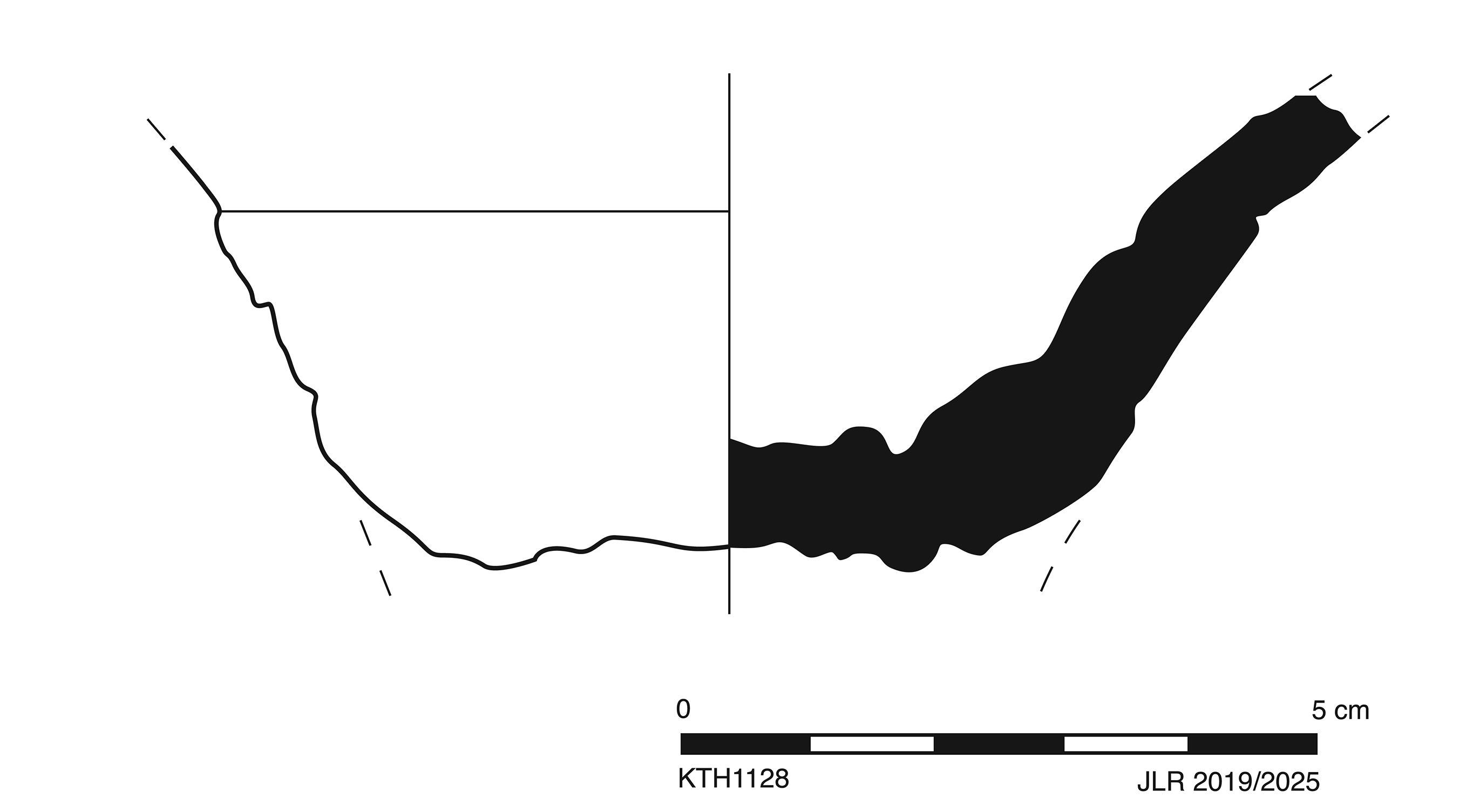One large sherd preserves entire toe and lowermost body. Slight to moderate, extensive abrasion and incipient flaking; worn breaks; thin, extensive encrustation.