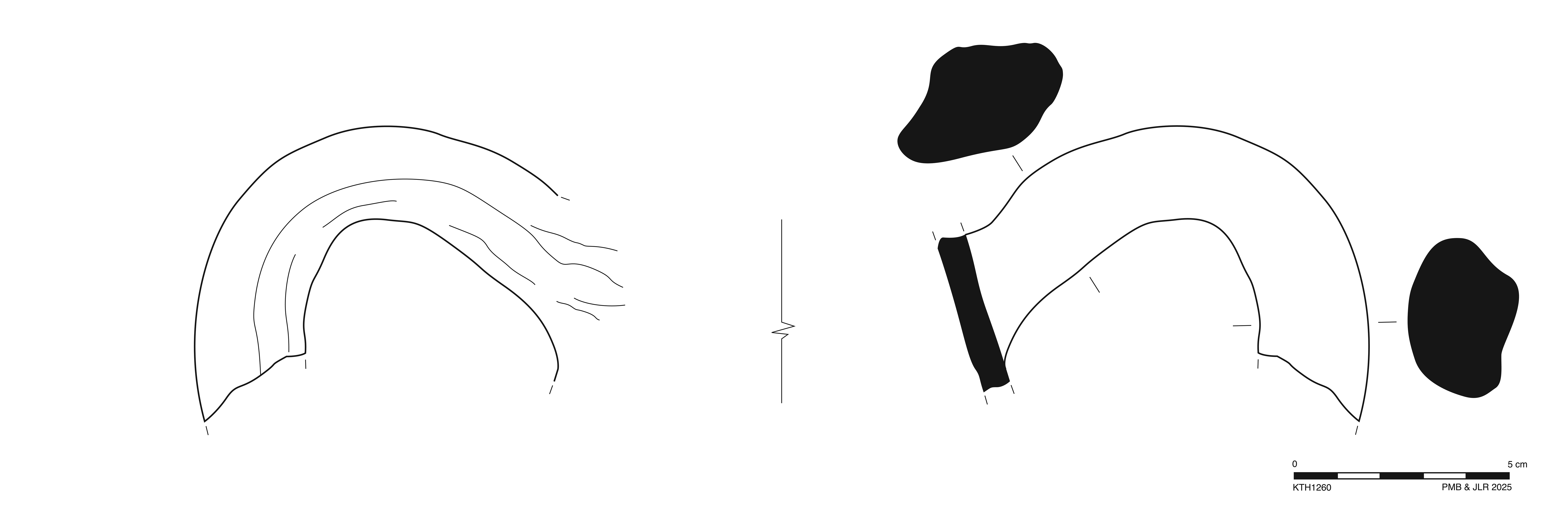 One sherd preserves middle to upper segment of one handle. Very slight, rare abrasion and chipping; mostly clean breaks and surfaces.