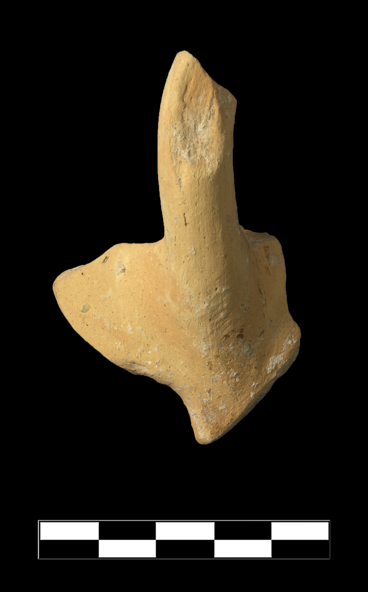 One sherd preserves ca. 30% of handle and small part of upper body. Severe, extension abrasion with some gouging and pitting and major chipping; thoroughly edges; sparse, small patches of encrustation.