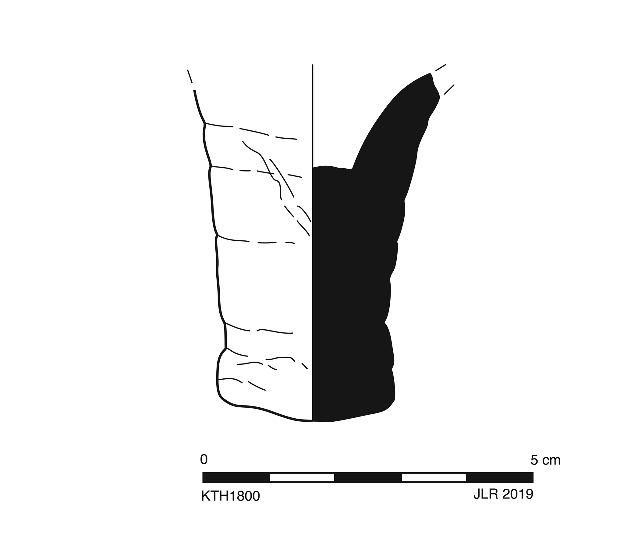 One sherd preserves lower part of toe. Slight, very sparse abrasion and rare gouging; worn breaks; faint film of encrustation.