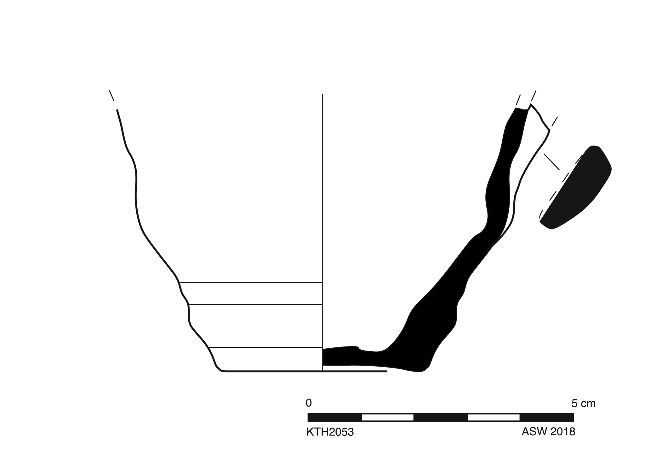 One sherd preserves ca. 35% of base and part of lower wall. Slight, sparse abrasion, flaking, and scoring; slightly worn breaks; little to no encrustation.