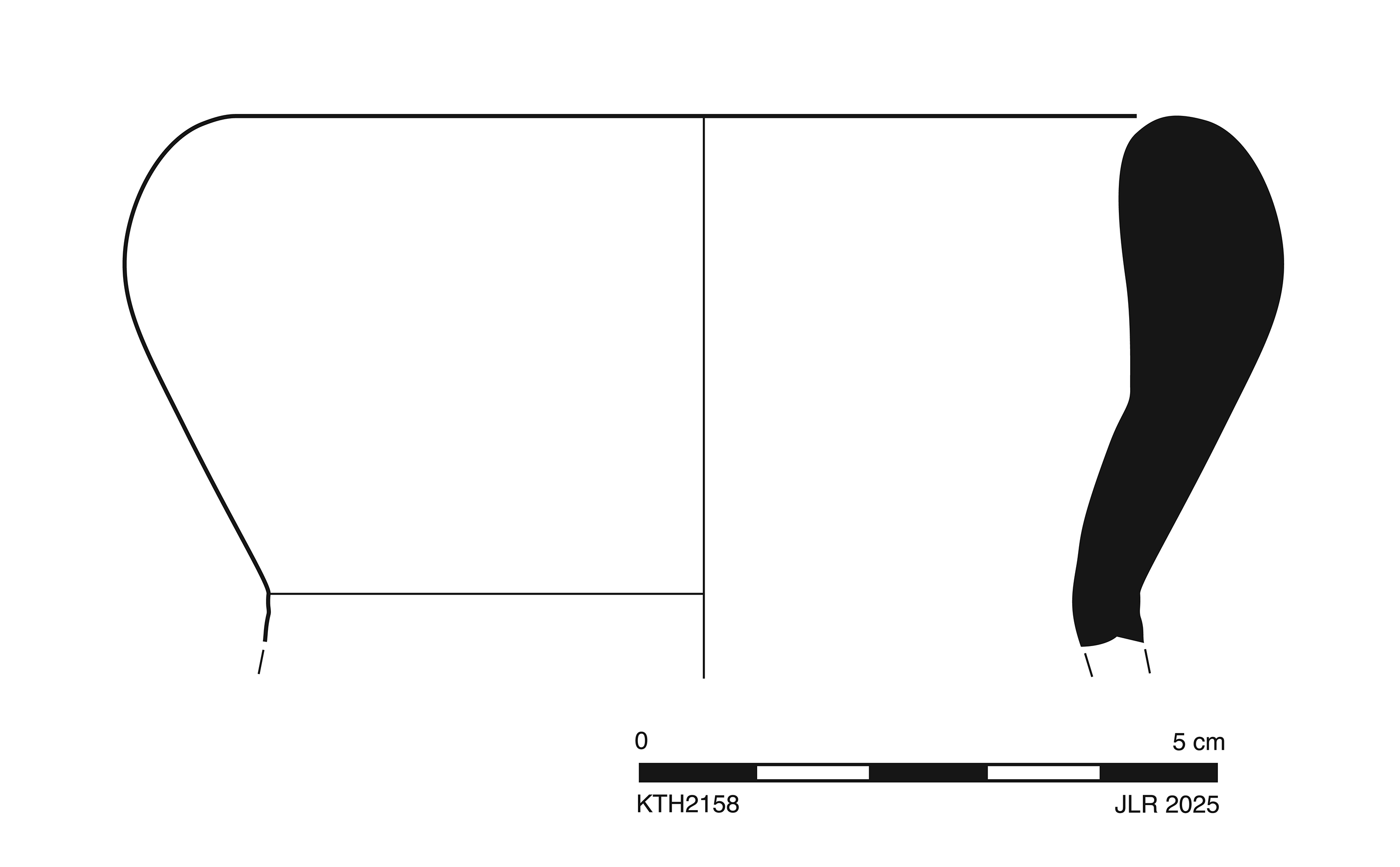 One sherd preserves 45% of rim and small part of uppermost neck. Slight abrasion(?) and minor chipping around edges; slightly worn breaks; extensive, thick encrustation.