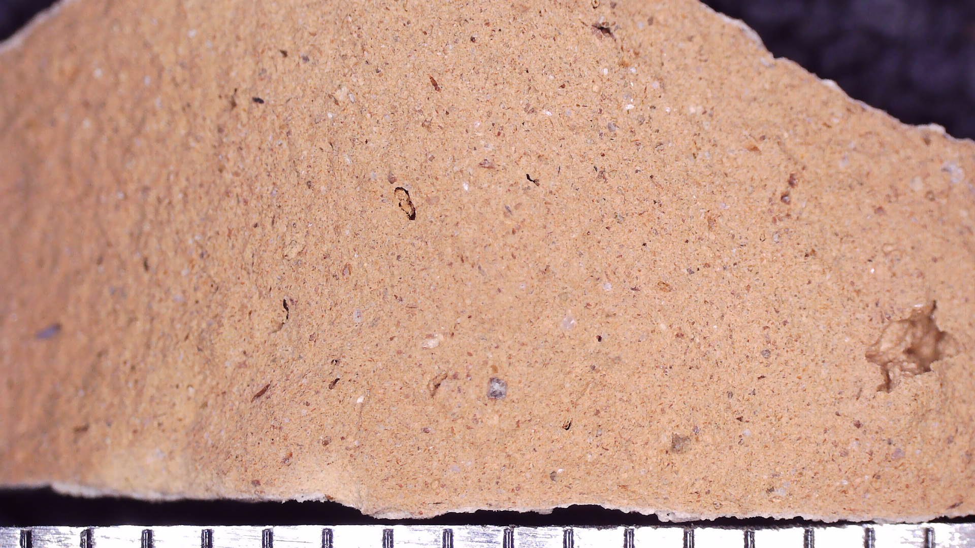SCA Fabric B: light reddish brown fabric, consistently fired; hard, fine, with smooth break; uncommon, tiny to small, poorly sorted, white (calcareous and quartzitic) and dark (gray or rarely black?) inclusions; slightly micaceous (silvery?). Smoothed surface. Eastern Aegean-western Asia Minor.