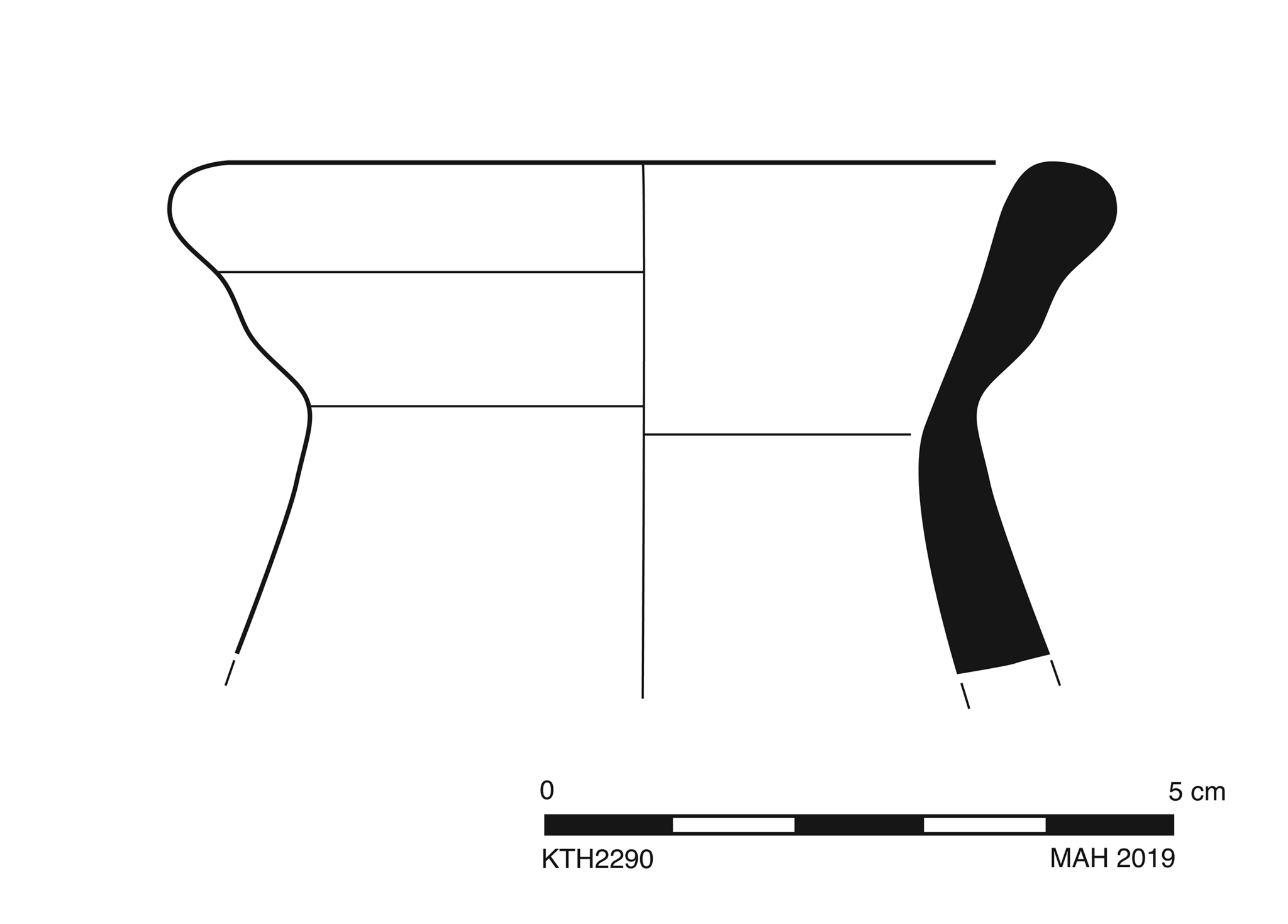 Standard southern Argolid LRA2 fabric, firing, and surface treatment: fine, pale orange fabric with thin wash fired pale yellow but variably with reddish clouding.