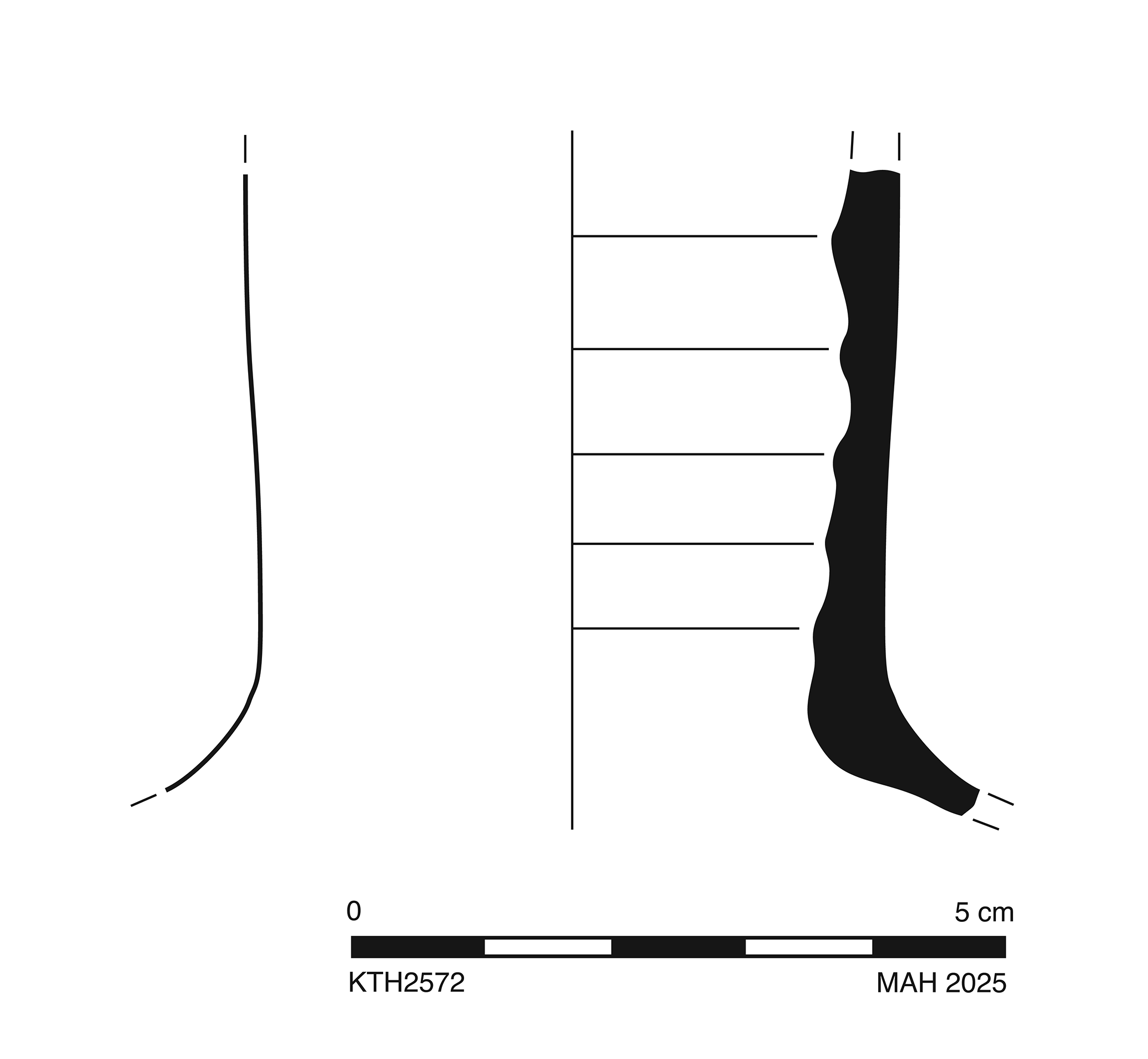 One large sherd preserves small part of shoulder and part of shoulder. Slight, sparse abrasion and scoring; slightly worn breaks; thick, extensive encrustation.