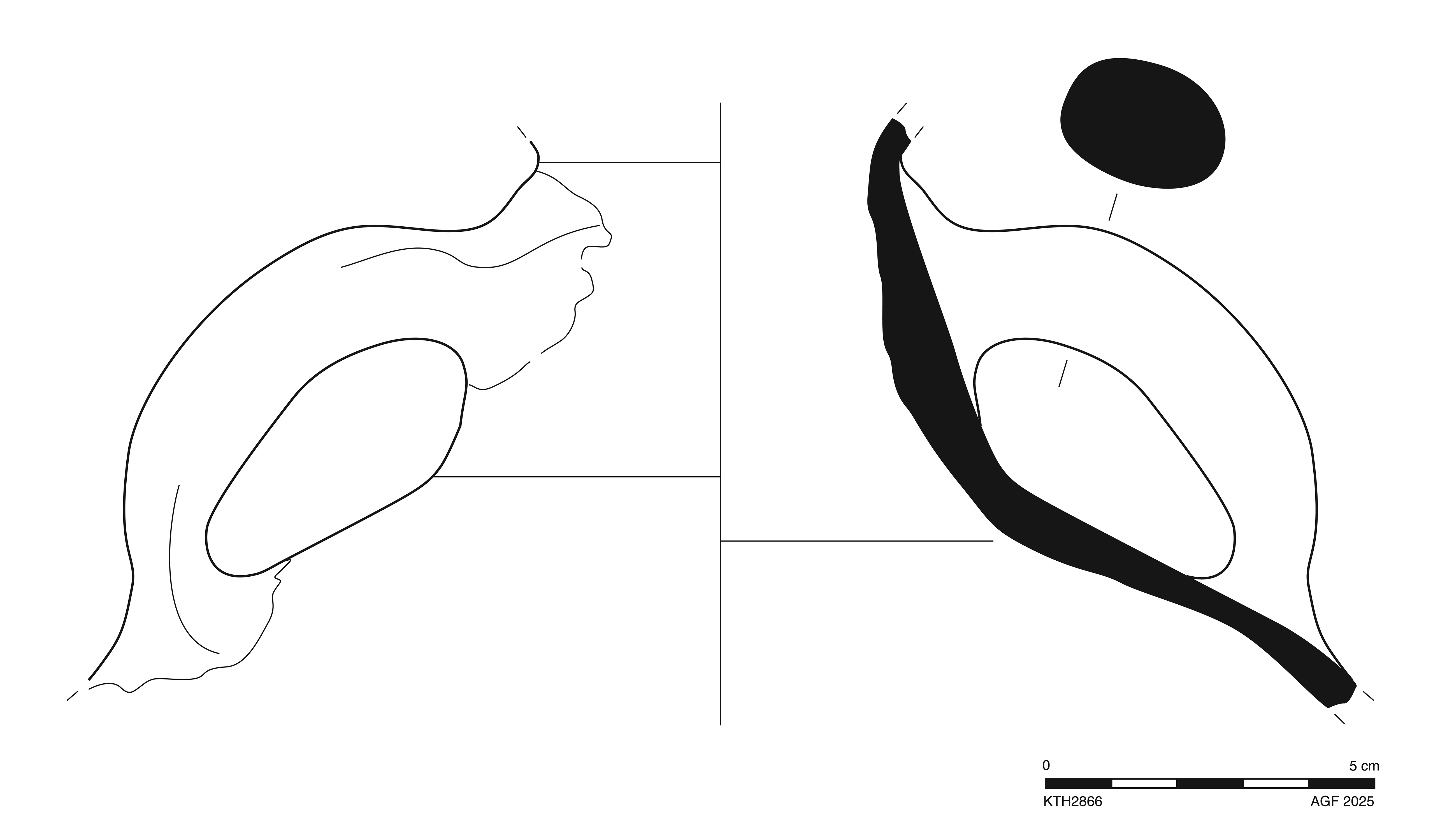 One large fragment preserves one half of neck between shoulder and rim and one entire handle. Slight, slight to moderate, somewhat extensive abrasion and minor chipping; worn breaks; rare thin patches of encrustation.