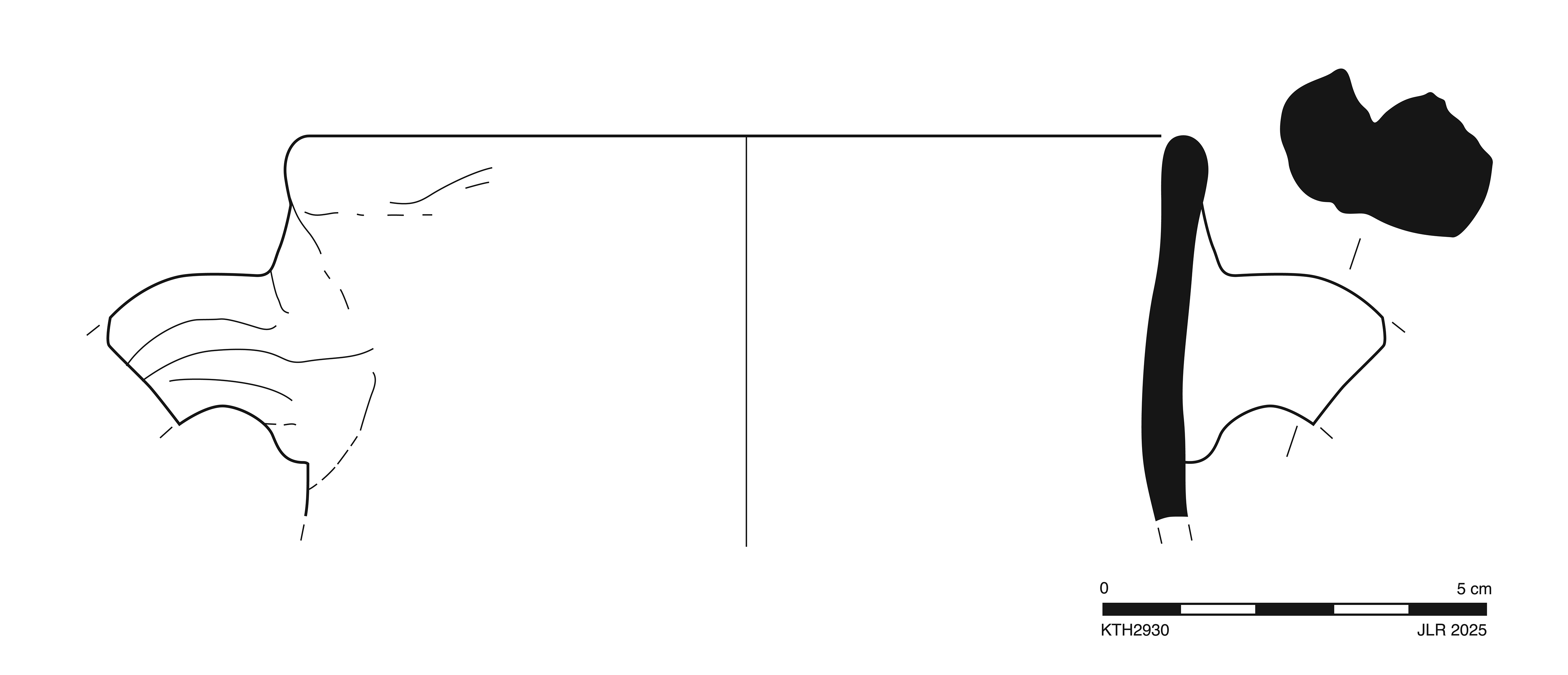 One large sherd preserves 8% of rim, upper attachment of handle, and contiguous part of upper neck. Slight, sparse abrasion with minor chipping; somewhat worn breaks; thin, extensive encrustation.