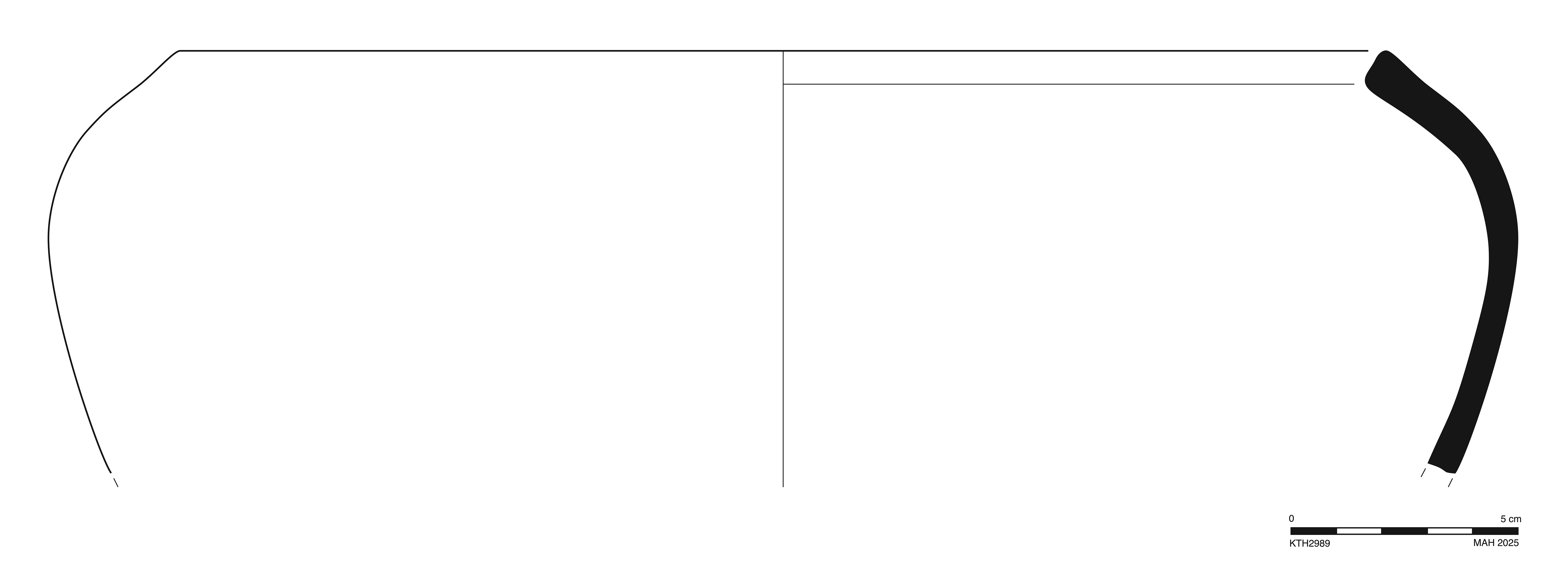 One sherd preserves 10% of rim and part of middle to upper body. Slight, sparse abrasion with rare gouging and chipping; slightly worn breaks; extensive, irregular, thick patches of encrustation.