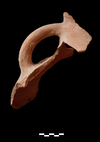 Globular amphora with loop handles, conical neck, and flaring rim. Workshops in different parts of the Aegean produced this amphora shape the Late Roman to Early Byzantine era, including active manufacturers in the southern Argolid. Predecessors in the development of the form are well documented, and it was succeeded by the Byzantine globular amphora. Kenchreai was a hub for the short- and long-distanct trade in regional commodities, especially olive oil, transported in LRA2s during Late Antiquity.